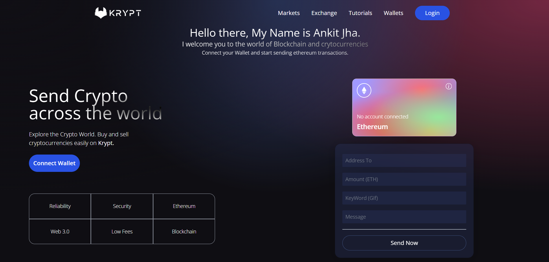 This application is built with React.js and Vite for performance optimization. It incorporates blockchain technology, utilizing Solidity to create smart contracts. By connecting your MetaMask wallet, you can easily send transactions to Ethereum addresses, ensuring their permanent storage on the blockchain network.